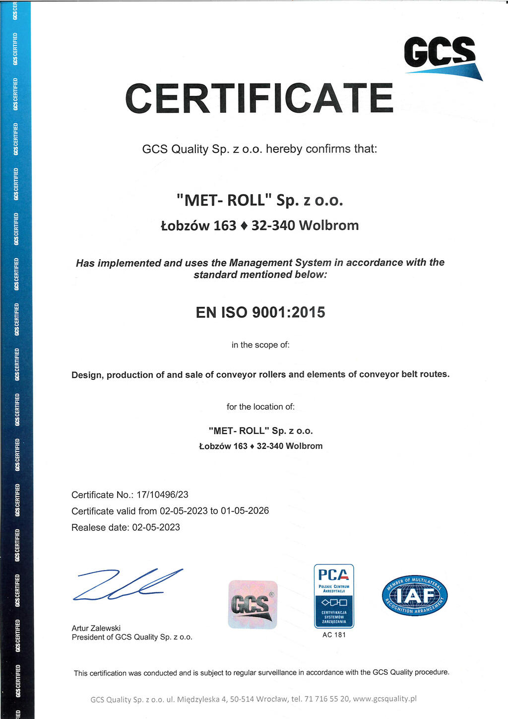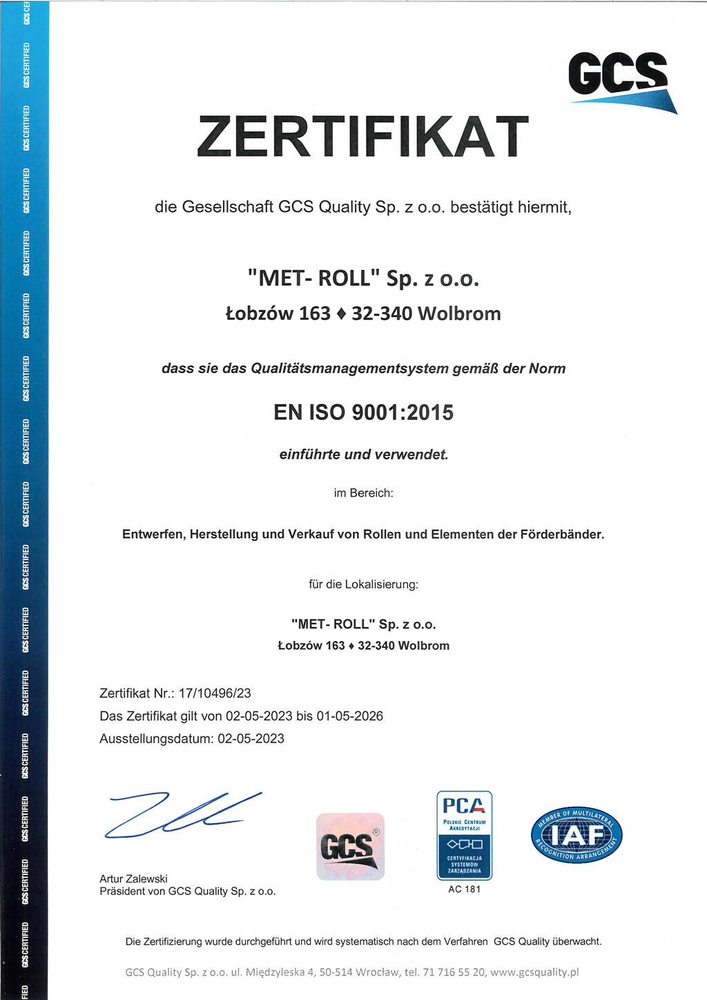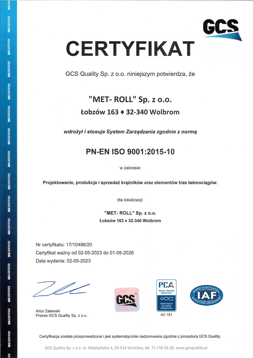 Met-Roll Sp. z o.o. Łobzów 163 32-340 Wolbrom
